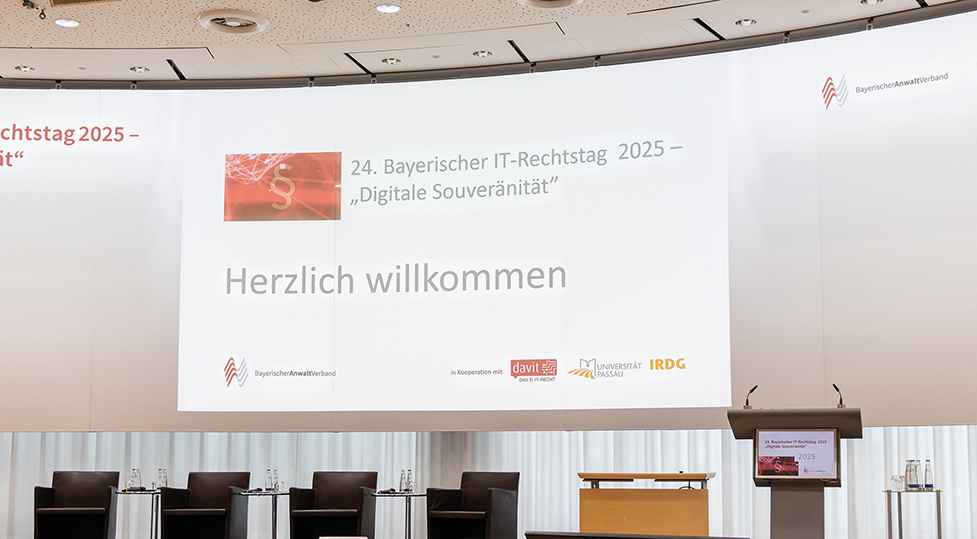Der 24. Bayerische IT-Rechtstag 2025, veranstaltet vom Bayerischen Anwaltverband e.V. in Kooperation mit der Arbeitsgemeinschaft IT-Recht im Deutschen Anwaltverein und der Universität Passau, Institut für das Recht der digitalen Gesellschaft stand unter dem brandaktuellen Titel „Digitale Souveränität”.